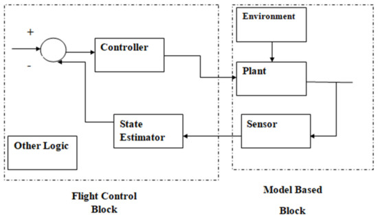 In the model-based block, model-based design is tuned and tweaks flight code. We can use this model code block to the real prototype UAV hardware model. The model-based design block consists of plant, environment, and sensor blocks. Figure 3 shows the block diagram of the prototype UAV model.