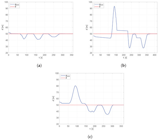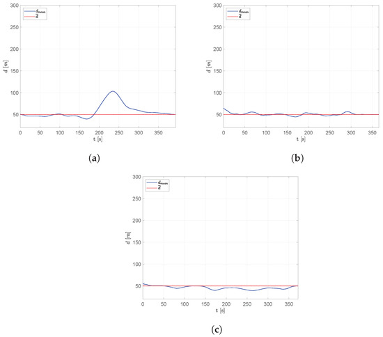 Figure 22. Scenario #4: Results in terms of average, minimum and maximum distances, d m e a n , d m i n and d m a x .