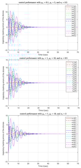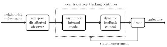 - In [28,29,33,34,35,36,39,40], the individual models are free of parameter uncertainty. In contrast, in this paper, both the uncertain velocity damping matrix and the uncertain control gain matrix are taken into consideration for the second order drone models. To deal with system parameter uncertainties, we have resorted to the p-copy internal model approach [41], which is robust against moderate variations of system parameters around their nominal values.