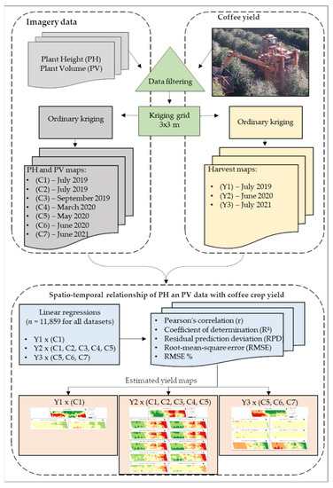 Flowchart of the spatio-temporal relationship between image data and coffee crop yield.