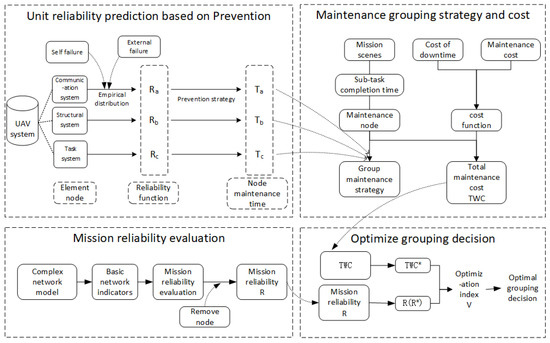 Chicago/Turabian StyleGuo, Jinlong, Lizhi Wang, and Xiaohong Wang. 2022. "A Group Maintenance Method of Drone Swarm Considering System Mission Reliability" Drones 6, no. 10: 269. https://doi.org/10.3390/drones6100269