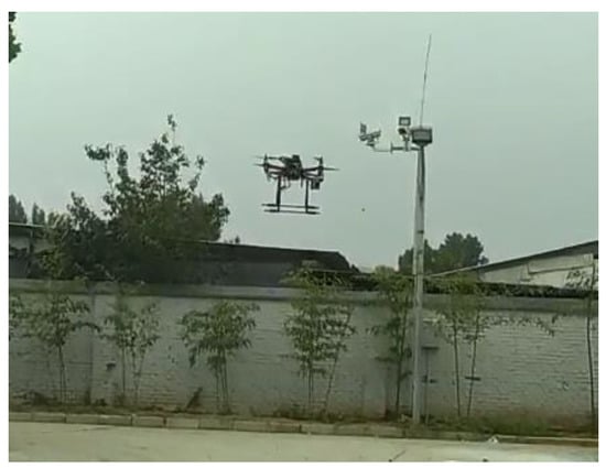 Based on the design and simulation results presented above, the software and hardware of a real-world prototype were developed. The payload platform of the AVA was integrated with avionics equipment, including a high-level onboard computer, remote control receiver, GPS receiver, central flight management unit (FMU), and radio. The central FMU needs to be fixed as near as possible to the COM of the payload platform. The FMU receives commands sent by the remote stick, calculates the feedback pose and velocity through sensor fusion, and then sends these values to the high-level onboard computer via a USB serial port. The radio communicates with a ground station, which is mainly used for monitoring and recording flight data.