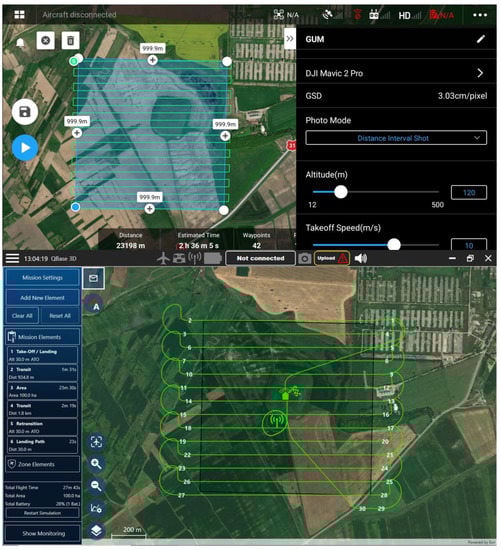 Gumelnița site. Screenshots of the used flight preparation and autopilot software: DJI Pilot (top) and QBase (bottom).