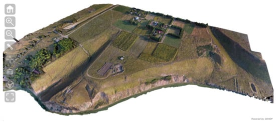 Within the framework of the archaeological fieldwork in the Mostiștea Basin and Danube Valley, many sites have been recorded using airborne image-based 3D modelling in previous years, such as Sultana Malu Roșu, Gumelnița, Ulmeni, Spanțov, Șeinoiu, Măriuța, and so forth. It is worth mentioning that two relatively large areas were covered during the previous campaign in the summer of 2021. In Sultana, an update of the 2018 overview model was generated for the entire plateau containing the tell settlement, the flat settlement, and the acropolis (Figure 7). The flight resulted in a series of photos with a GSD of 2.5 cm, which is also the resolution of the final orthophoto. These data not only allow the documentation of the archaeological fieldwork that took place during the campaign but will also be included in the time series initiated in 2018 to investigate the magnitude of the erosion processes of the cliff.