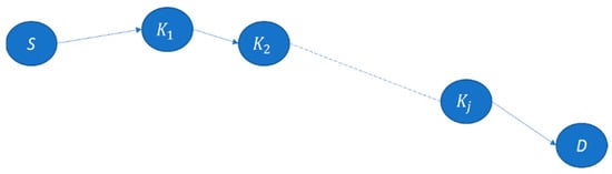 Assumption 3.2.2 supposes that we always had a fully charged UAV at the beginning of a mission. If the UAV could not fly from node S to D without recharging, meaning that , we assumed that when the UAV reached the destination it had no remaining power. On the other hand, if , we did not need to consider the energy charging time of any path, because we did not need to charge the UAV during its mission.