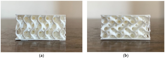Specimen with gyroid in X direction (a). Specimen with gyroid in Y direction (b).