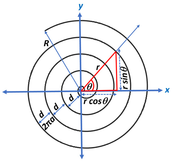 The spiral used in our approach is the Archimedes spiral. Archimedes spiral is a special case of the Archimedean spirals, named after the Greek mathematician Archimedes. It is defined as the space made over time by a point moving outward from a fixed central point with a constant speed along a line that rotates with constant angular velocity. An Archimedes spiral can be described with polar coordinates by the equation,