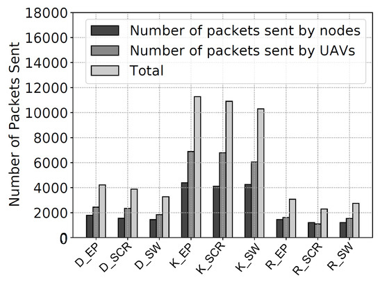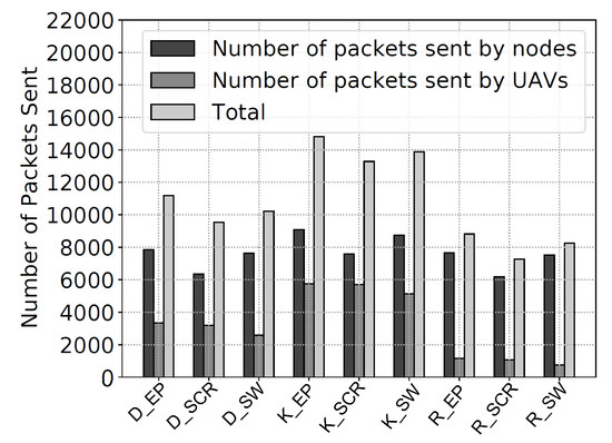 - Bacanli, S.S.; Turgut, D. Energy-efficient unmanned aerial vehicle scanning approach with node clustering in opportunistic networks. Comput. Commun. 2020, 161, 76–85. [Google Scholar] [CrossRef]