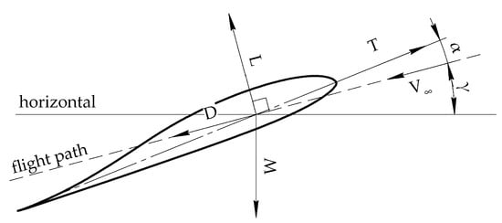 The MTOW W0 was chosen as the objective function. The design variables were the aspect ratio AR, leading-edge sweep angle ΛLE, taper ratio λ, geometric twist τ, wing loading W/S, flight speed v, the first coefficient of the polynomial of the camber line C, the angle of attack α, and the static margin ( − ). The proposed method allowed for the consideration of other types and a number of design variables. However, emphasis was placed on these parameters, as they have the greatest influence on the flight and energetic characteristics of small electric UAVs. The constraints were as follows: