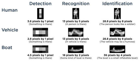 17], curves for the precision and recall of a machine learning-based thermal detector are presented. It is stated that the video clips used for training and evaluation have a frame resolution of 1920 × 1080. Unfortunately, the paper fails to mention if this is also the resolution of the sensor. Neither is the input size of the detection network specified in detail, other than the images are re-scaled so that the shorter side has 600 pixels. The most substantial results to relate to in [