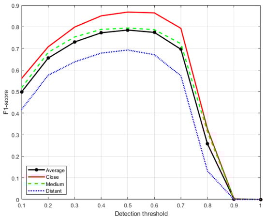 Figure 16. In a similar vein, a detection threshold of 0.5 results in a balanced precision-recall combination near the top right edge of the respective curves. Notably, when inspecting the precision-recall curves, the video camera detector performs outstandingly when it comes to distant airplanes. This has its explanation in that such targets often presents a very large signature consisting not only of the airplane itself but also contrails behind it. Furthermore, calculating the mAP from these results, we obtain