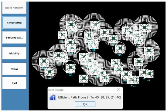 Figure 8 shows the secure optimal path generated from the inputted source and destination values. From the optimal path generated from source node 8 to destination node 40, the secure optimal path is [