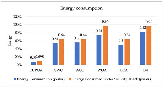 Figure 11 shows the average energy consumption of the proposed RUPOA. The results prove that the proposed algorithm consumes less energy in both path selection and attack mitigation compared with the existing algorithms.