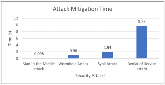 Figure 12 shows the average attack mitigation rate of the proposed algorithm that provides an optimal path even under security attacks using the Ethereum consensus of the blockchain system, protecting the UAV network from security attacks.