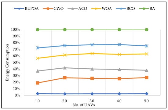 Figure 13 shows the energy consumption of the UAV nodes for an increased number of UAVs. Based on these results, the energy consumption of the proposed algorithm is less compared with the existing algorithms.