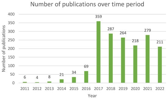 Number of publications on UAV swarms from 2011 to June 2022.