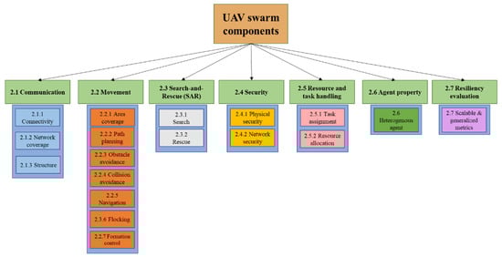 A categorization of UAV swarm components and modules.