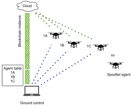 - Jensen, I.J.; Selvaraj, D.F.; Ranganathan, P. Blockchain Technology for Networked Swarms of Unmanned Aerial Vehicles (UAVs). In Proceedings of the 2019 IEEE 20th International Symposium on “A World of Wireless, Mobile and Multimedia Networks” (WoWMoM), Washington, DC, USA, 10–12 June 2019; pp. 1–7. [Google Scholar]