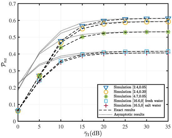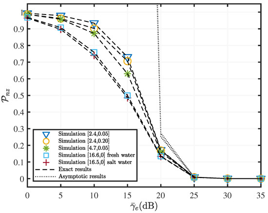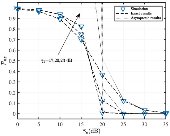 PNZ is another critical metric for to evaluate the secrecy performance of a communication system, which is defined as Pr C s > 0 , where C s is the secrecy capacity. PNZ is generally related to channel conditions of all the channels in the mixed RF/UWOC systems. In this section, we derive the exact closed-form and asymptotic expressions for PNZ and analyze the relationship between channel parameters and PNZ performance.
