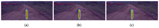 After obtaining the trajectory represented by the heatmap, multiple frames can be accumulated. The confidence of the model output at each moment is different. When the model output is wrong (i.e., ), this frame should be discarded. Therefore, we use the weighted summation when accumulating, and the confidence C of the model is used as the weight. The cumulative calculation formula of k frames before time t is shown in Equation (12)