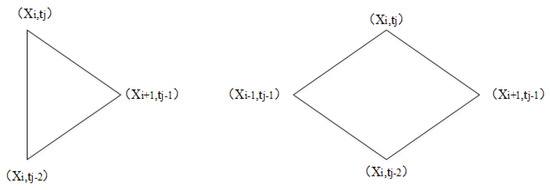 The difference scheme of boundary points and interior points is shown in Figure 3.