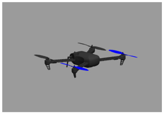 The vehicle used in our tests is a simple quadcopter, shown in Figure 1, that can be controlled by linear velocity commands in the x, y and z axis. The yaw of the vehicle remains constant with small variations at its initial value, yaw = 0. For all the experiments we assume a constant flight altitude is used.