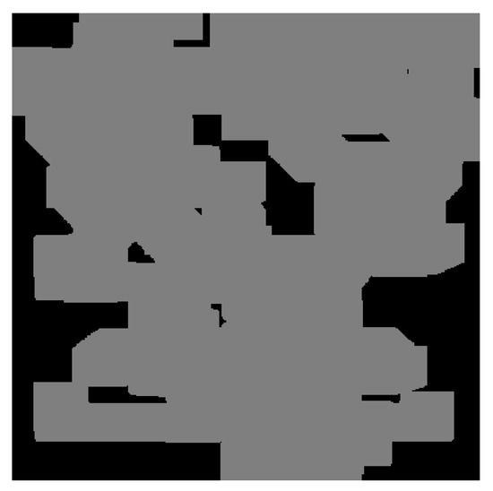 Figure 10. Coverage example with 10 agents, 78.02% coverage. The grey area depicts the coverage that the agents succeeded as a group in 180 s.