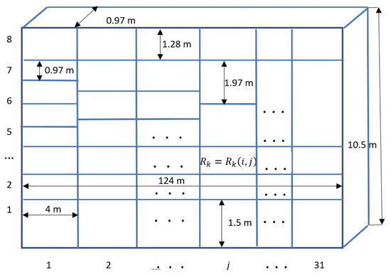 Before applying the method to real warehouses, the usability of the model and the solution algorithm for a simplified, but real warehouse was examined. A drone was used during the investigation. The structure of the specific warehouse is as follows (Figure 11 and Figure 12):