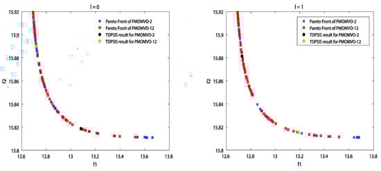 - − MOPSO []: social and cognitive parameters 2, grid inflation 0.1, leader selection pressure parameter 2, and number of grids per dimension 7.