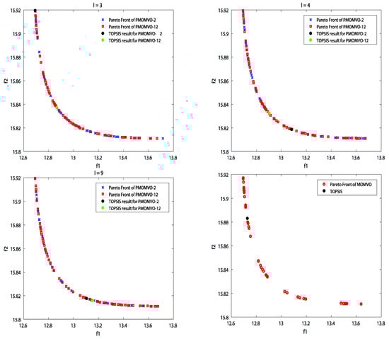 - − MOGWO []: grid inflation 0.1, number of grids per dimension 10, leader selection pressure 4, and extra repository member selection pressure 2.