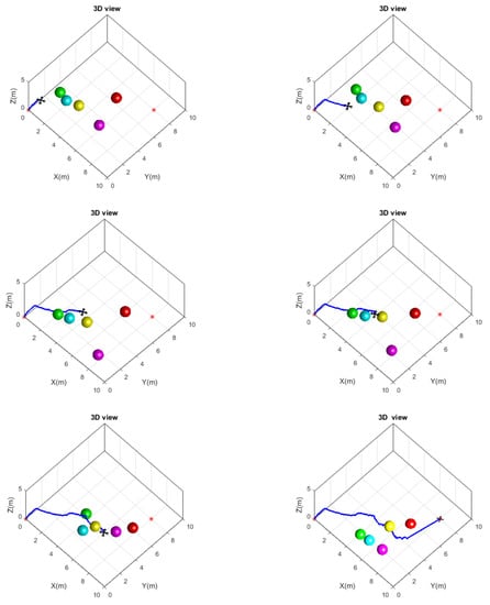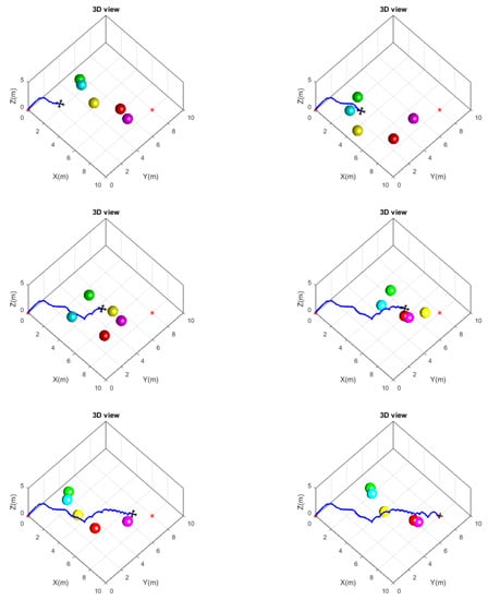 where and represent the center’s coordinates and radius of the jth sphere-based modeled obstacle, respectively.