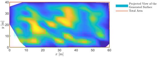 As a further means to evaluate the quality of reconstruction for the mapping missions, here, a metric so-called projected reconstrued area ratio, , is proposed. This metric is defined as the ratio between the projected area of the generated surface, , to the total area to be mapped, :