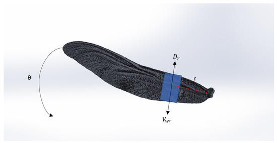 - is the linear velocity of the section of the wing at radius r;