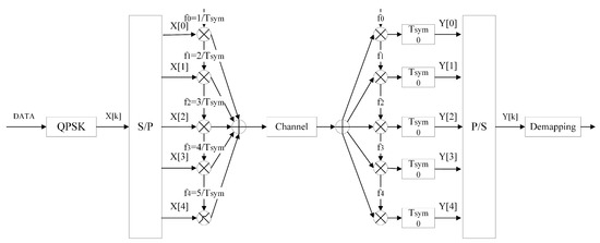 4) shows that the OFDM system can be regarded as the product of input symbols and channel response in the frequency domain. In the absence of intercarrier interference, the receiver can recover the original signal and remove the channel interference as long as it knows the channel response of each subchannel.