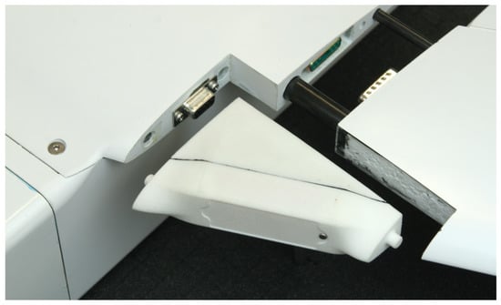 Catapult launcher: For ensuring a controllable flight during the propeller run-up right after the launch, a minimum speed of 75 km h is required due to the wing loading of 16 kg m. This can be accomplished by the spring-loaded catapult shown in Figure 8 (ElevonX, Tržič, Slovenia). A specially designed fixture to accommodate the aircraft on the catapult was later developed and integrated based on the first tests. Its total length of approximately 4 m and a folding mechanism make the catapult easy to transport. However, achieving the required minimum speed on such a short length while keeping the peak acceleration moderate is challenging. During initial testing, the velocity of the aircraft was determined by evaluating the individual frames of a high-speed camera located next to the catapult. The distance traveled from frame to frame times the frame rate of the camera yielded the velocity. The acceleration profile during the launch was recorded by the inbuilt inertial measurement unit (IMU). A test launch performed with an aircraft mass of 5.5 kg gave a final velocity of 75 km h and a peak acceleration of about 10 g (10 times the Earth acceleration), which has to be considered during the design of the structure. For comparison, a catapult launcher for manned aircraft typically accelerates with less than 4 g.