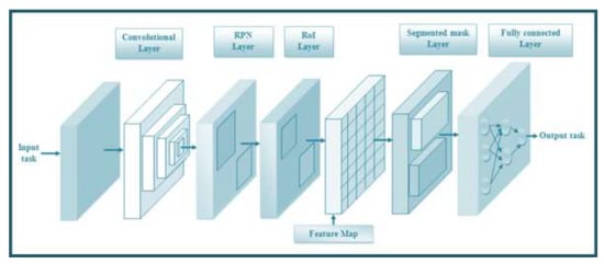 Based on the OMDP choice, an ideal strategy is implemented, which eventually positions the qualities from the picture () and video stage () to be given to the extremity characterisation, a move toward in training the dataset to rely on the extremity of the position value of the information. The current extremity characterisation will, in general, accomplish an erroneous recognition because of the low quality of the picture and the off-base division of the picture. To overcome these difficulties, a Mask R-CNN assembly to analyse the movement based on the geolocation has been developed (Figure 4). The created approach is split into specific layers, such as: