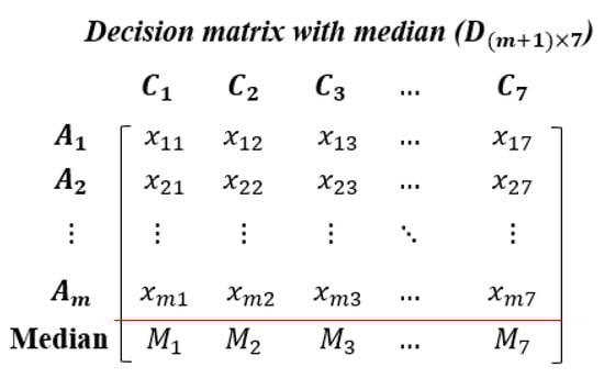 Figure 3. The decision matrix (D) with median values inserted as a new alternative (last row). - C.