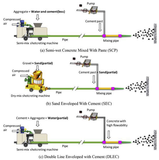 - Agulló, L.; García, T.; Aguado, A.; Yubero, E. Evaluation of isotropy in wet-mix sprayed concrete. Mater. Construcc. 2009, 59, 19–30. [Google Scholar] [CrossRef]