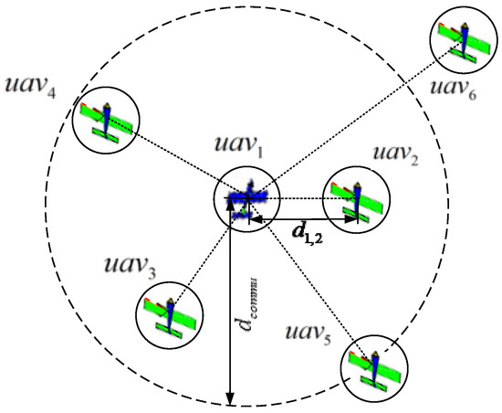When the distancebetween UAVand UAVsatisfies the Equation (4), UAVis said to be the neighbor of UAV, and setis called the neighbor set of UAV.