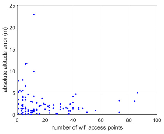 Relationship between the number of Wi-Fi access points and the observed altitude error.