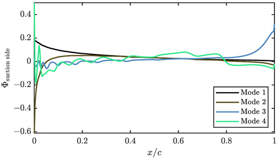 First four modes of the pressure coefficient of the suction side.