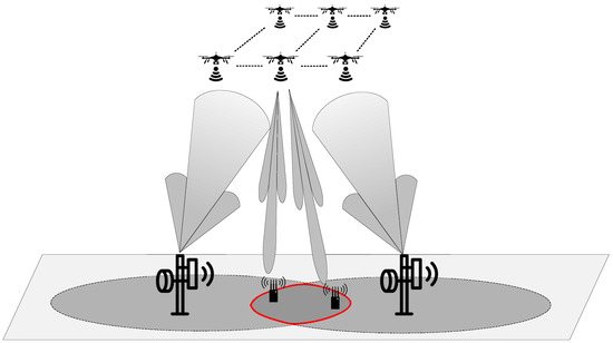 In this scenario, drones can be viewed as airborne antenna elements, that can be conjointly utilized for performing massive MIMO, 3D MIMO and mmW communications. Beamforming using aerial elements can be pivotal in reducing intercell interference by forming distinct beams to simultaneously cover desired grid elements.
