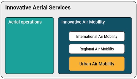 Figure 1, these services include new types of air operations (e.g., specialized operations in agriculture), but also Innovative Air Mobility (IAM). The latter includes a new generation of technologies enabling safe, secure and sustainable air mobility of passengers and cargo, likely integrated into a multimodal transportation system, whose backbone would no longer be the vehicle but a digital ‘ecosystem’ in which all vehicles and several other digital actors will be integrated. IAM comprises international air transport (subject to ICAO provisions), but also regional flights on a shorter range, as well as Urban Air Mobility (UAM), which is the subset of IAM operations conducted into, within or out of urban environments, using manned or unmanned aircraft.