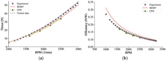 - Loureiro, E.V.; Oliveira, N.L.; Hallak, P.H.; de Souza Bastos, F.; Rocha, L.M.; Delmonte, R.G.P.; de Castro Lemonge, A.C. Evaluation of low fidelity and CFD methods for the aerodynamic performance of a small propeller. Aerosp. Sci. Tech. 2021, 108, 106402. [Google Scholar] [CrossRef]