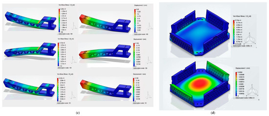 Stress and Displacement of the Drone’s Parts. (a) Centre Top Cover. (b) Side Top Cover. (c) Drone’s Arm. (d) Middle Cover.