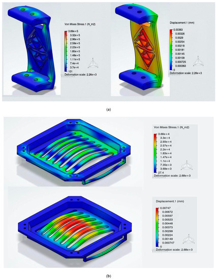 Drone’s Carriage Stress and Displacement. (a) Leg Bereket. (b) Bottom Cover.