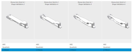 Due to their wide range of applications, the attention towards drones has been constantly growing for the past decade. With the help of CAD software, many studies have been conducted to continue optimizing the performances of current drones in recent years while adapting the use of 3D printing technologies because they will play an integral part in the fourth industrial revolution [35]. Table 4 represents several examples of drone designs. Three Dimensional printing, which is a type of rapid prototyping, allows the low cost of drone fabrication [36,37], while CAD software enable the simulation such as the finite element analysis (FEA) to be carried out [38]. The main application used to simulate the design of the drone is the Functional Generative Design (FGD) application. Generative design is a revolutionizing product design and development technique of exploring multiple permutations of a solution to obtain the best design option. This application aims to optimize manufacturability and create a lightweight design; hence, saving material usage during manufacturing of the product. By applying different inputs based on the requirement and target, multiple variations can be generated in the system, which allows the user to perform a trade-off study to compare and analyze the options available. Finally, a detailed design can be constructed based on the chosen design for additive manufacturing.