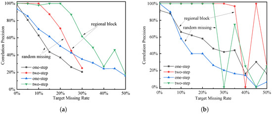 (a) The effect of target missing rate of statistical results on correlation precision; (b) the effect of target missing rate on association precision in a specific experiment.