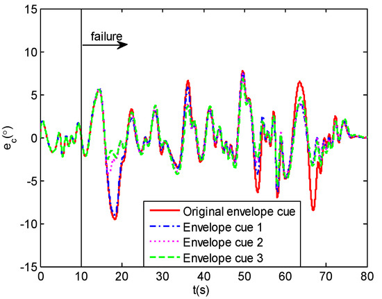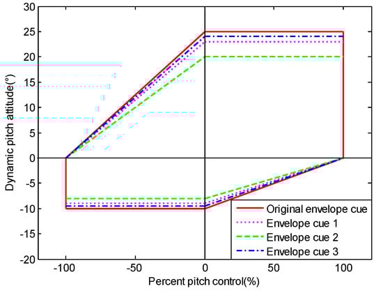 The above results are summarized in Table 4. The assessment metrics results under different envelope cues are given as follows. It can be seen that the assessment results of envelope cue 2 are better than others, which indicates that the flight envelope cue near the place of 90% from the upper and lower boundaries is the most helpful for mitigating the loss-of-control related to pilot induced oscillations.