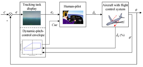In the research of pilot–aircraft system analysis with the flight envelope cues, the existing investigations mainly focus on analyzing the effect of flight envelope protection systems on human pilots through the flight test [22,23,24]. For example, Van Baelen proposed a new haptic feedback concept with a flight envelope protection system to limit the inputs of pilot control [25,26]. Then the results of an experimental evaluation were discussed to validate the feasibility and correctness of the design [27,28]. Ackerman developed an interface system display in the simulator, which was conceived to improve pilot situation awareness with respect to a flight envelope protection system [29,30]. Stepanyan combined the aural, visual, and tactile cues to predict loss-of-control safety margins as the aircraft gets closer to the edge of the safe operating envelope through the flight test simulation [31]. However, the flight test results above may vary with individuals, it is necessary to evaluate the effects of the flight envelope cues by establishing a parametric model of the pilot behavior that covers a broad range of behavior. Previously, we have developed an intelligent human pilot model based on a smart inceptor for the aircraft [32,33]. The feature of the model is its capability to reflect the interaction between the smart inceptor and the human pilot. The model provides a feasible way to predict the characteristics of a pilot–aircraft system including a smart inceptor for mitigating loss-of-control. As for the human pilot behavior with the flight envelope cues, the distinction from the above-mentioned model lies in the differences in the cue path, feedback signal, and the pilot’s control strategy between the smart inceptor and flight envelope cue system. The flight envelope cue provides the flight information for the human pilot via a display cue and the human pilot control strategy will be adjusted according to the position of flight state parameters in the flight envelope. Thus it is worth studying the human pilot behavior of the aircraft with the flight envelope cue.